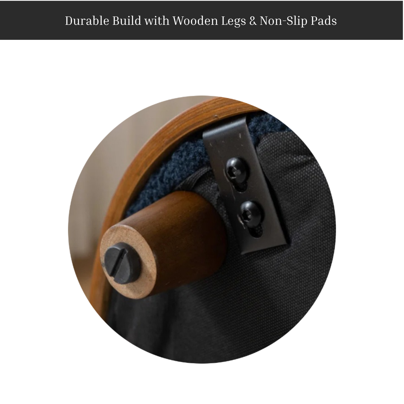 - Solid wood legs with no slip pads